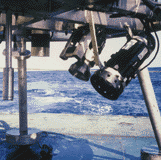 Bis zu 4000 Meter tief kann die Hydro-Bottom-Station an einem Kabel vom Forschungsschiff auf den Meeresboden abgesenkt werden. Ferngesteuert wird dort unten eine Lanze ausgefahren (im Foto links), um Wasserproben zu entnehmen. Mit Kameras verfolgen die Wissenschaftler diese Aktionen (im Foto rechts). Doch das Umfeld der "hydrothermalen Emanationen" - was soviel bedeutet wie hervorquellende heiße Lösungen - hat mehr zu bieten als neue Lebensformen. Es erlaubt einen Blick auf die Entstehung von Erzlagerstätten, auch Gold- und Silbervorkommen, und könnte von wirtschaftlicher Bedeutung sein. Durch den Austritt von Kohlendioxid und Methan, einem der aggressivsten Treibhausgase, gewinnen diese Quellen zusätzlich Bedeutung für das "Global Warming".
