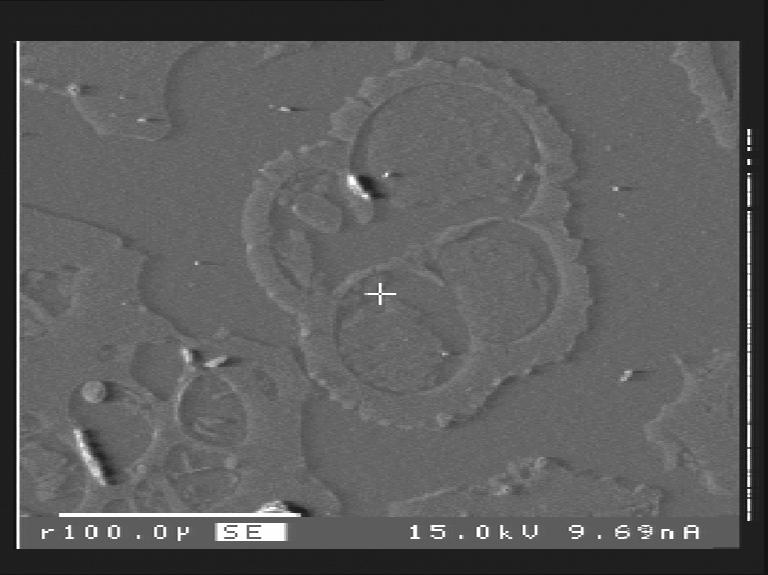 Die Abbildung zeigt das Backscattered-Elektronenbild von Foraminiferen.