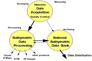 The bathymetric survey is the first of three steps in bathymetry data management.